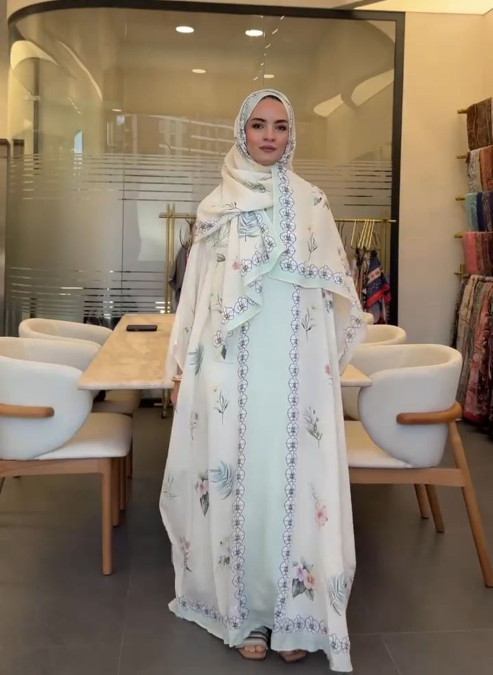 A floral abaya made of summer friendly fabric and enough flair: making it perfect for summer.